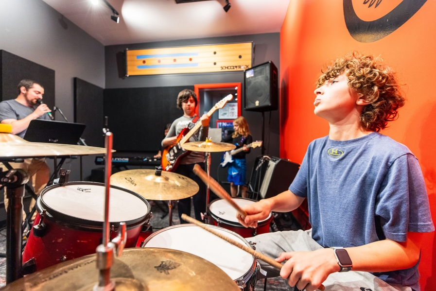 We have tons of great music camps for teens! Popular options include camps themed around specific artists (like The Beatles or Green Day), genres (like Classic Rock or 90s Rock), or skills like songwriting. Check your local School of Rock's schedule to see what's available for teens this summer.